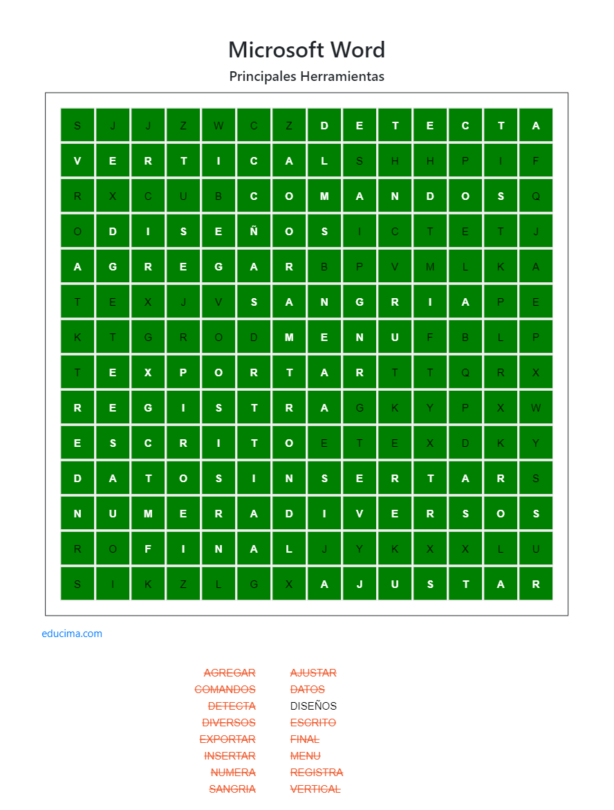 - Entrar al siguiente link y resolver en línea la sopa de letras: